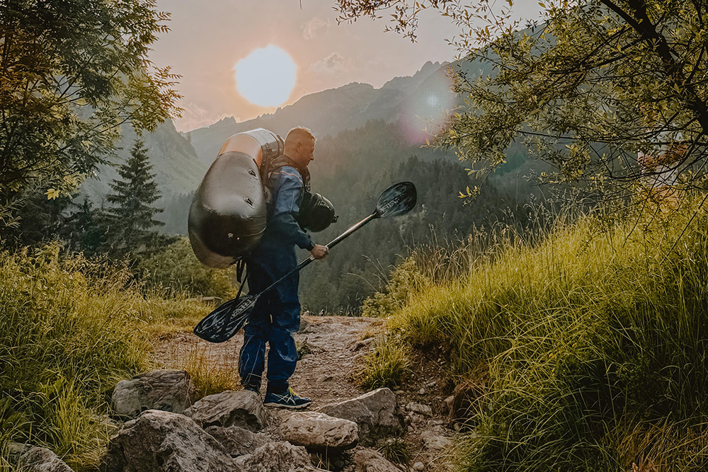 Packrafting kombiniert Wandern und Rafting in einem kompakten, aufblasbaren Floß. Sie tragen Ihr Floß beim Wandern einfach in Ihrem Rucksack und blasen es mit einem speziellen Luftsack auf, sobald Sie auf einem Fluss oder See weiterfahren möchten.